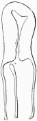 Fig.40. Doppelte Vagina bei einfachem Uterus. 22-jähriges Mädchen, gestorben an Hirntumor. Beide Vaginen völlig getrennt bis in die unmittelbare Nähe der Portio, wo sie miteinander bei X kommunizieren. Doppelter Hymen. (Verkleinerte Skizze nach einer Zeichnung MARCHANDS.)